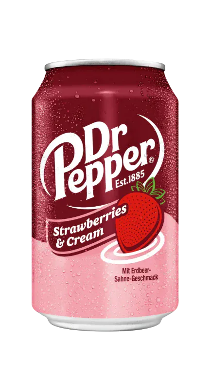 Dr Pepper Strawberries & Cream – 12 x 355 ml Dosen MHD: 12.08.2025